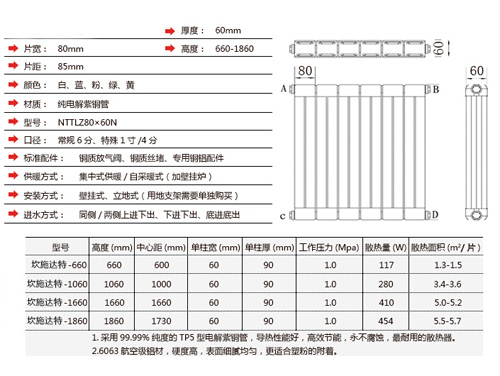 銅鋁復合80x60散熱器